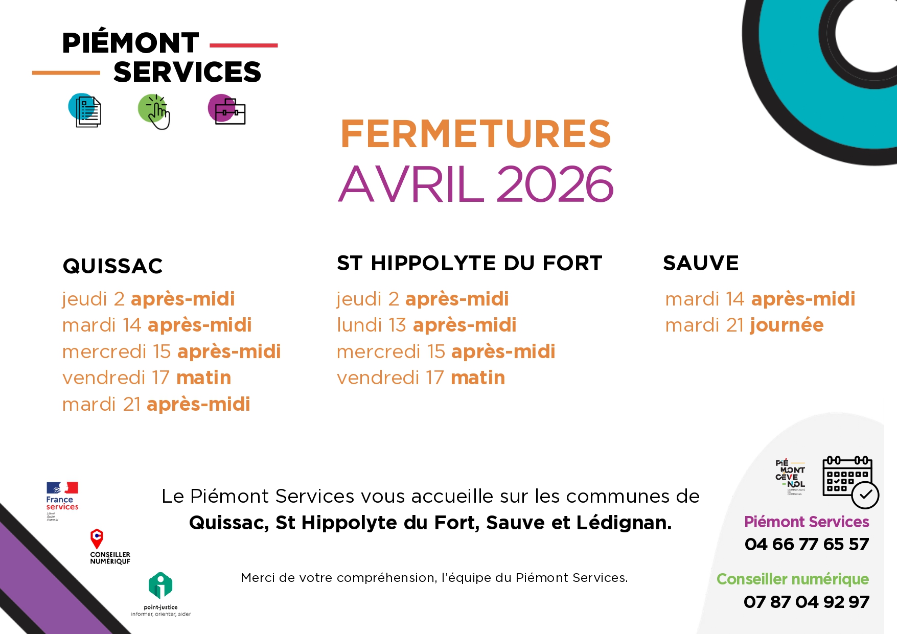 Depuis septembre 2023, le Piémont Services rassemble la Maison France Services, le Relais Emploi, le conseiller numérique du Piémont Cévenol et plusieurs partenaires locaux dans un espace unique à Quissac. Une équipe de professionnels qualifiés et attentifs est disponible pour aider et accompagner les usagers dans leurs démarches quotidiennes, qu’il s’agisse de santé, famille, retraite, droits, logement, impôts, recherche d’emploi, ou encore d’accompagnement numérique.